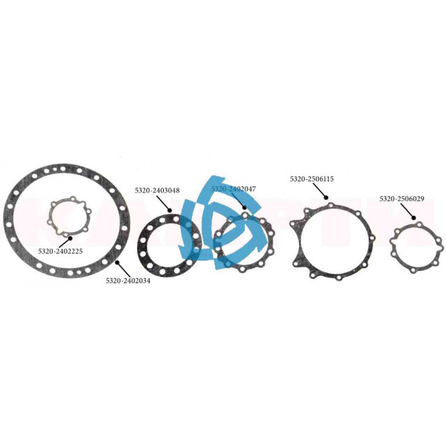 Ремкомплект прокладок среднего моста редуктора КАМАЗ (паранит, 6 позиций) "КАМРТИ"
